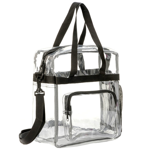 Wholesale Case Lot: 20 pcs Heavy Duty STADIUM Clear Tote Quality See Through Messenger Work Bag Durable Transparent PVC Lunch Bag ||| 20 PACKS | $11.99 PER PACK