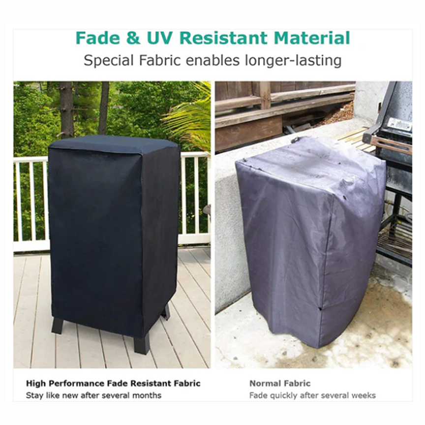 - Heavy Duty color fade resistant water repellent/resistant fabric, high quality material with superior colorfastness, resists UV, repels rain, resists tears and cold cracking, durable and last longer, gives your smoker all year round protection against hot sun, rain, cold snow, wind, dust , heat and dirt.