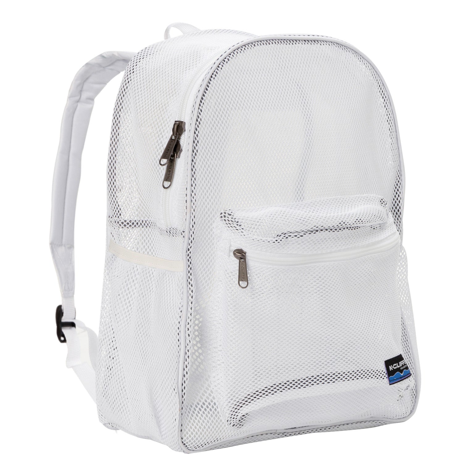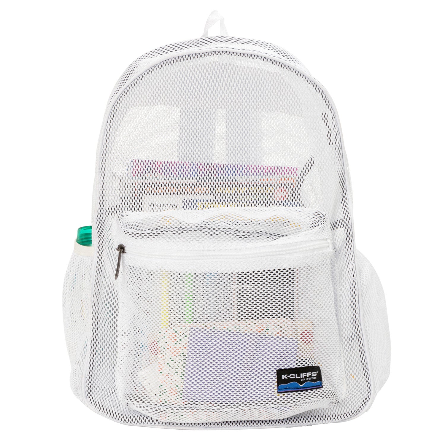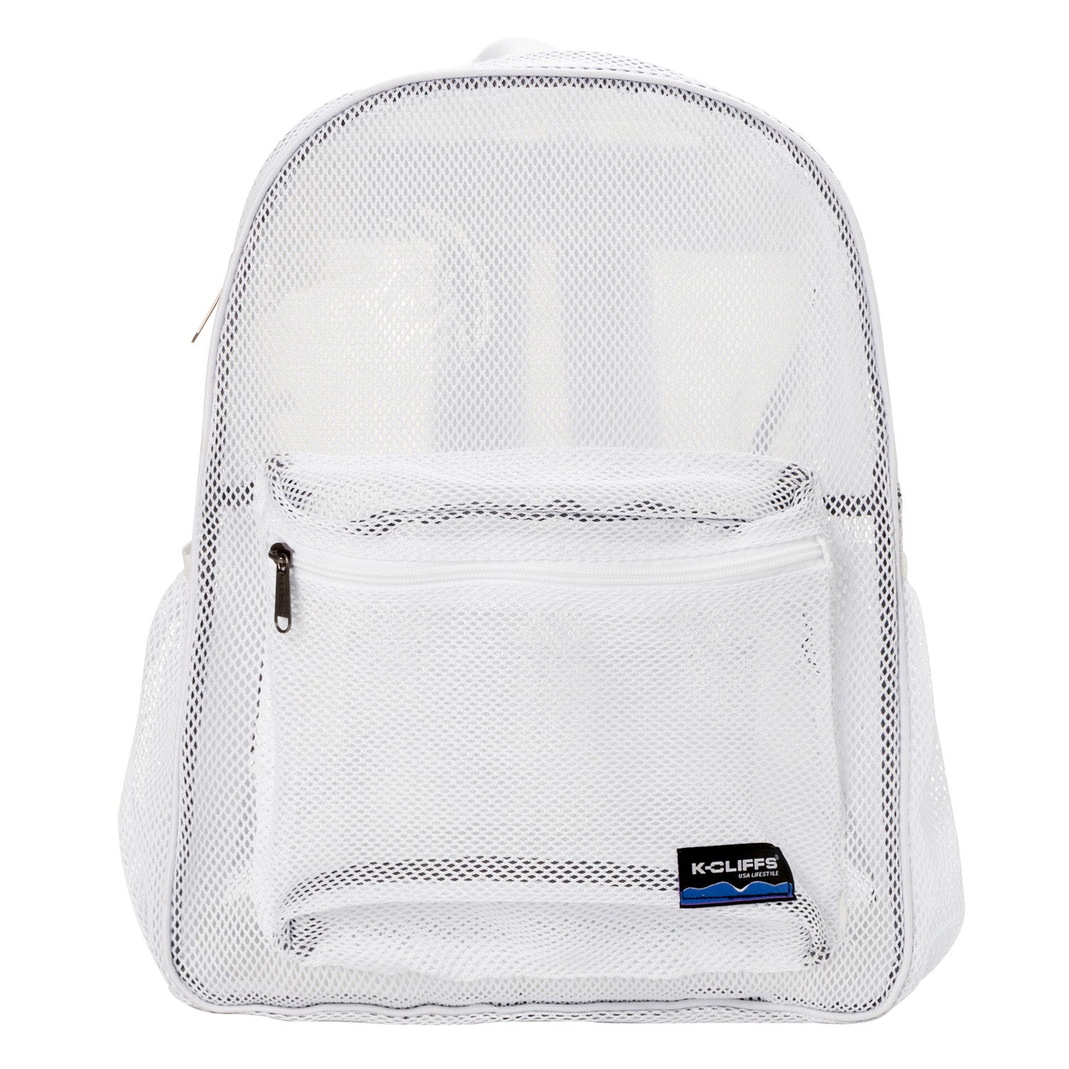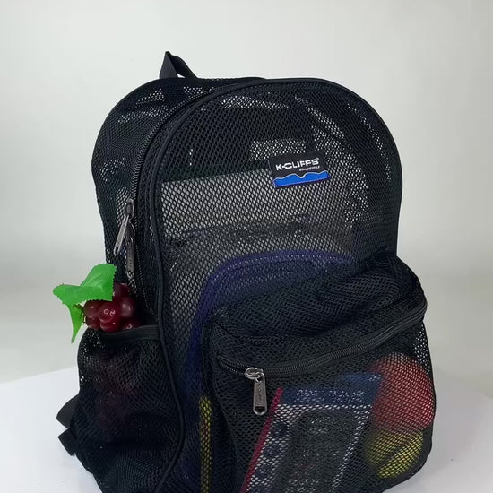 - Durable See Through Student Mesh Backpacks with zippered front pocket.